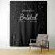 A simple, modern, elegant, formal and classy bridal shower backdrop template featuring a black background, a sprinkle of white diamonds (simulated, not real diamonds!), modern calligraphy script and typography in white. The word "Bridal", in modern script calligraphy, is covered in white diamonds (simulated digitally, not real diamonds). A chic, timeless design that combines traditional, formal wedding design with modern script calligraphy and a trendy layout.