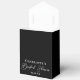 This elegant black bridal shower favor box features beautiful white typography for an evening party in the winter. Minimalist script is a modern trend for a contemporary bride.