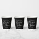 This elegant black bridal shower party paper cup features beautiful white typography for an evening party in the winter. Minimalist script is a modern trend for a contemporary bride.