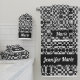 Chic Black & White Floral Checkerboard Custom Name Bath Towel Set