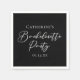 This elegant black bachelorette party paper napkin features chic white typography for a modern bride who is going to have an upscale event with her bridesmaids. Trendy personalized minimalist bachelorette party decor.