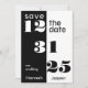 Bold and sophisticated, this save-the-date card features a striking split-panel design in classic black and white. The date is dramatically emphasized with large, stylized retro-chic numbers, ensuring your guests immediately recognize this incredibly important event.