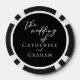This modern black and white wedding poker chip features elegant white typography for an evening reception in the winter. Minimalist script for a trendy bride and groom.