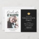 This chic and minimalist graduation party invitation features your photo and a simple white background with letterings in black and a graduation cap in faux gold glitter. The reverse side features a black background. Personalize it for your needs. You can find matching products at my store.