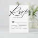 Chic black white script calligraphy rsvp wedding card