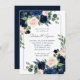 Chic Blooms | Romantic Blush Navy Frame Wedding Invitation