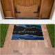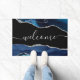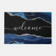 Chic Blue Agate Silver Glitter Script Welcome Doormat
