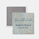 Chic and one of a kind, this is a blue and copper colour Save the Date magnet. With "Save the Date" written across the front in lovely blue cursive lettering, the Couple's name and wedding date is presented underneath. Customize your magnet today!