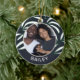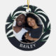 This trendy holiday ornament for your furry friend features a stylish dark blue, green and white botanical print with your dog's name in simple typography and a centre photo. Please view this pet collection for stylish coordinating holiday or birthday pet gifts and everyday puppy items.