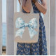 This beautiful blue bow tote bag is elegant and chic. Perfect for strolls through the garden and beach vacations. A one of a kind statement piece to add to your pretty wardrobe.