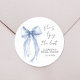 Chic Blue Bow Watercolor Bridal Shower Classic Round Sticker