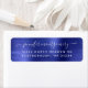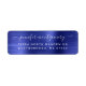 This elegant return address label features your name in modern white script with your return address for your to personalize on a background of faux blue brushed metallic texture.