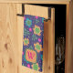 Chic Blue Floral Colourful Monogram Initial Kitchen Towel
