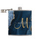 Chic Blue Gold Glitter Agate Monogram Name Hip Flask