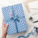 Chic blue greek key geometric patterns monogram wrapping paper
