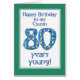 A stylish 80th Birthday Card for a Cousin, with the number 80 made from a handpainted paper collage, in blue, green and white, coordinating with the lettering and the card's border. Don't forget you can easily customise the inside of this 80th Birthday Card.