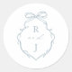 Chic Blue Hand Drawn Bow & Ribbon Monogram Crest Classic Round Sticker