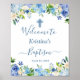 Chic Blue Hydrangea Floral Baptism Welcome Sign Poster.
