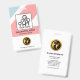 At the top of the badge is a photo template to upload photos with a size of 1,000 x 1,000 pix. The pink layout behind the photo will help if your photos have a white background. Below the photo are your prestigious name and job title. In the corresponding white layer, lies an optional gold figurine logo that you can use alongside its organization name.