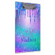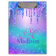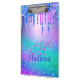 Chic blue purple ombre glitter drips monogram Clipboard. Make back to school fun with this Cute personalized Clipboard. To make it extra special, it is also monogrammed and personalized with name. click the "customize further" link and use the design tool to modify the design if you like. Beautiful, modern and cool Clipboard for school, college or even your journals. Show off your personal style, look fashionable, trendy and feel stylish around your friends with a unique design on your Clipboard or customize it over another product of your choice. Whether for valentines day, Christmas or as a gift in general it makes a great gift idea for any girl who loves modern sparkly things. PLEASE NOTE: These are flat printed graphics - no real glitter, jewels or raised parts