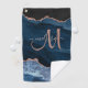 Chic Blue Rose Gold Agate Glitter Custom Monogram Golf Towel