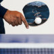 Add a touch of glitter and glam to your game with this elegant personalized ping pong paddle.featuring a background of blue and rose gold glitter agate with your monograms and name in a hand lettered script calligrpahy. A unique girly gift for birthday, holidays and any special occasion. Designed just for you by Extreme Tees!