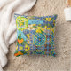 Chic blue turquoise sicilian citrus floral tiles throw pillow