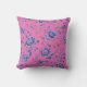 Chic Blue White Pink Floral Tapestry Throw Pillow