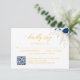 Chic Blue Yellow Floral Wedding QR Code RSVP Card