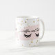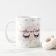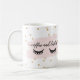 Chic coffee and lashes mug with modern script typography and pretty pastel blush pink watercolor splashes with faux gold confetti and your name.