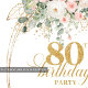 Chic Blush Floral Greenery Gold 80th Birthday Invitation