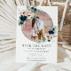 Chic Blush Navy Blue Floral Silver Greenery Photo Save The Date