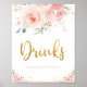 Chic Blush Pink Floral Gold Foliage Drinks Sign