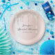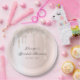 These personalized glitter and glam paper plates will add sparkle to your bridal shower. This chic design template features a top border of blush pink dripping glitter on a shiny background. Customize with a name and date in modern grey script. Designed by Susan Coffey.