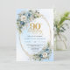 Chic Bohemian Blue Floral Greenery 90th Birthday Invitation