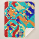 This vibrant vector abstract blanket features an energetic pixel-art-inspired design, combining bold blocks of red, blue, orange, teal, and cream. The playful and modern geometric pattern creates a visually captivating aesthetic, perfect for adding a pop of colour to any room. A customizable monogram square in the bottom allows for personalization with initials, making it a thoughtful and unique gift or stylish accessory for personal use. This striking design makes it a standout decor piece.