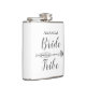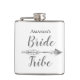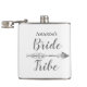 A flask with the caption "bride tribe" and a name above which can be customized along with an arrow in the middle for extra flair. Modern minimal boho vibes.