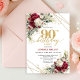 Chic Boho Burgundy Blush Floral Gold 90th Birthday Invitation