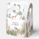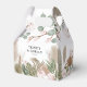 Chic boho wedding favour boxes. Design features a classic white background adorned with succlent watercolor eucalyptus greenery, pretty pink orchid flowers, rustic dried leaves, pampas grass and other botanical foliage. Easy to customize by using the template provided.