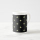 Un chic Bone China Coffee Mug, avec de minuscules pois de Lilies-of-the Valley sur un arrière - plan noir ; de la collection Posh & Painterly 'For the Love of Lilies'.