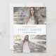 Chic and modern graduation party invitation features two of your favourite horizontal/landscape oriented photos bisected by a white band bearing the graduate's name, school and graduation year. Personalize the reverse side with your graduation party details, framed by an intricate Moroccan style border in chic grey and white.