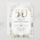 Elegant botanical-themed 50th birthday invitation featuring beautiful watercolor greenery in sage green and gold