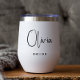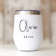 Chic moderne gardien de vin thermale tumbler pour la mariée à célébrer avec à sa douche nuptiale, soirée bachelorette, dîner de répétition, réception et autres événements mariages. Personnalisez avec son nom dans un script de calligraphie fine et "Bride" dans une élégante typographie serif. Des tumblers correspondants pour le marié, demoiselles d'honneur et d'autres sont disponibles - message nous pour le lien.