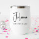 Chic moderne keepsaké thermo tumbler pour vos demoiselles d'honneur pour célébrer et lever un toast avec avec à votre douche nuptiale, la fête de bachelorette, dîner de répétition, réception et autres événements mariages. Personnalisez avec son nom dans un script de calligraphie fine et son rôle dans la typographie serif élégante. Ce tumeur peut être personnalisé pour la mariée, la bonne ou l'honneur.