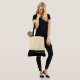 This lovely fashion forward tote bag shows the word "Bridesmaid" in white text colour over black with the upper tote bag in custom Champagne. Has plenty of room for personalized text. Graphics and text are on both sides of this tote bag. Black handle. Customize further or buy as shown.