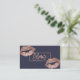 An elegant modern, stylish and simple brows business card with elegant script hand lettering style typography with faux rose gold frame and lips on a navy blue customizable background. A simple and professional design