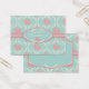 Aqua, pink, and white damask print with sweet polka dot Easter bunnies and 3D-look tag and gingham check trim Easter gift tag.