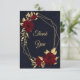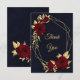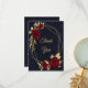 Chic and elegant navy blue thank you card featuring beautiful burgundy flowers and some elegant gold leaves.
