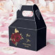 Chic and elegant navy wedding favour box featuring beautiful burgundy flowers and some elegant gold leaves.