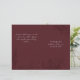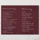 Elegant custom wedding program done in a rich burgundy, with lovely burgundy flourishes. Light grey text, on both sides of the program, is ready to personalize with all your wedding information. Fold in half to form the program. Matching wedding products are available.